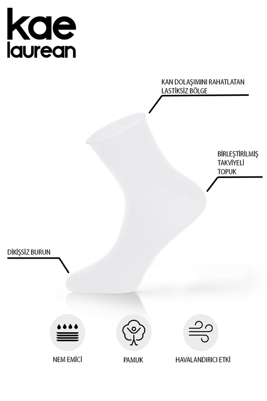 Erkek 4'lü Pamuklu Lastiksiz Beyaz Dikişsiz Esnek Iz Bırakmaz Uzun Konç Sıkmayan Çorap