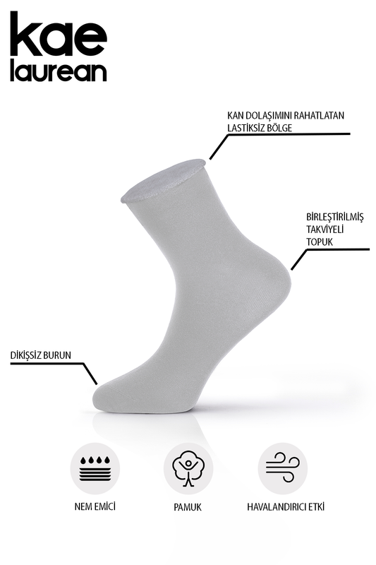 Erkek 3'lü Pamuklu Lastiksiz Gri Dikişsiz Esnek Iz Bırakmaz Kısa Konç Sıkmayan Çorap