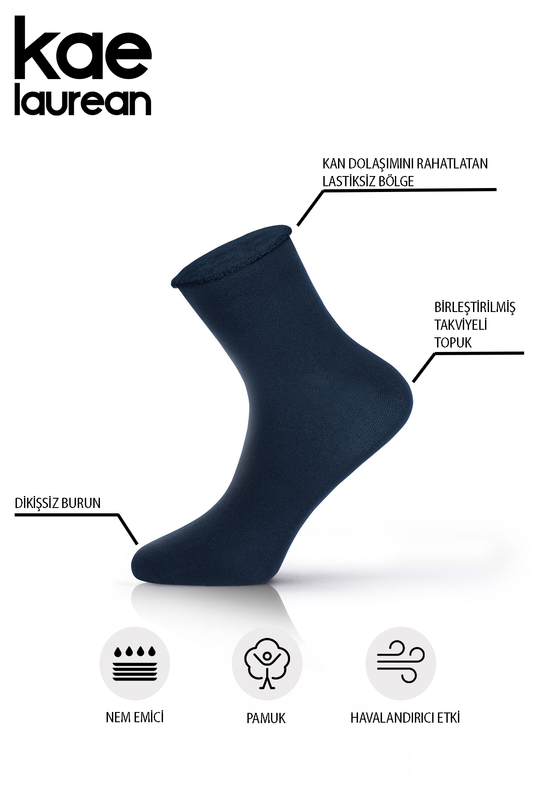 Erkek 4'lü Pamuklu Lastiksiz Lacivert Dikişsiz Esnek Iz Bırakmaz Uzun Konç Sıkmayan Çorap