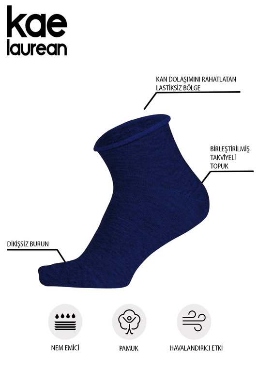 Kadın 4'lü Pamuklu Lastiksiz Dikişsiz Esnek Iz Bırakmaz Kısa Konç Sıkmayan Çorap